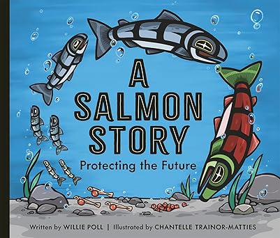 A lyrical informational picture book about how open-net pen fish farms impact wild salmon and their ecosystems Salmon are central to their ecosystem and the lives of many Indigenous Nations, but the rapid rise of open net-pen fish farming has threatened these longstanding connections. Salmon have followed the same migration routes for thousands of years, but the fish farming industry has had a deadly impact on their annual journey. Open-net pen farms release harmful waste into the ocean that is lethal to the wild salmon forced to swim through it. Now, the salmon must battle against the human-made destruction of their habitat, and many Nations are advocating for change and creating calls of action to protect salmon for future generations. As the young salmon journey from their gravel nests to the open ocean, readers learn about the life cycle of wild salmon, the effects of open-net pen fish farms, and the role of salmon as a keystone species. Boldly illustrated with gorgeous Northwest Coast formline art, rhythmic poetry combines with supportive nonfiction content to illuminate the struggles faced by wild salmon populations.